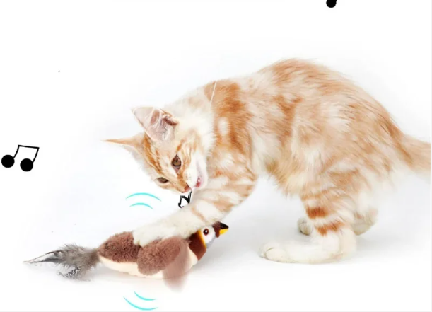 This toy mimics a real bird with chirping sounds and wing-flapping movements when touched by your cat. Itβs designed to activate your catβs natural instincts, offering both mental and physical stimulation in a safe and fun way.