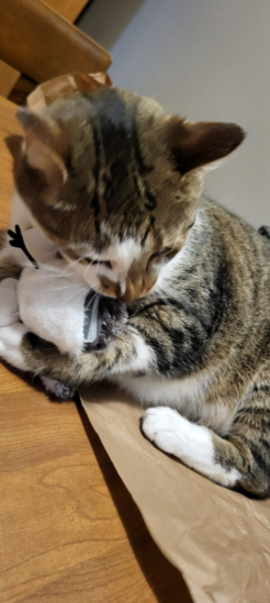 My heart melted seeing how much joy this toy brought to one of the shelter cats. Thank you for making this possible.